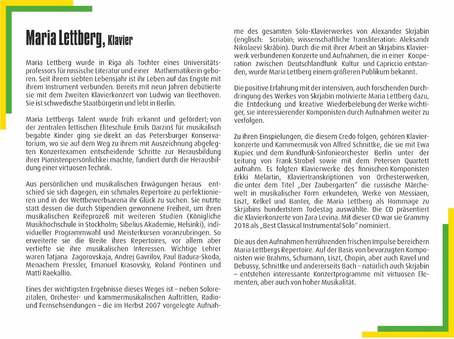 Franck, Prélude, choral et fugue + Skrjabin, Fantasie h-moll op. 28